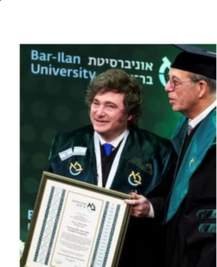 El presidente argentino Javier Milei brindó una extensa exposición en la Universidad de Bar-Ilan, donde recibió un doctorado Honoris Causa y desarrolló los principales ejes
